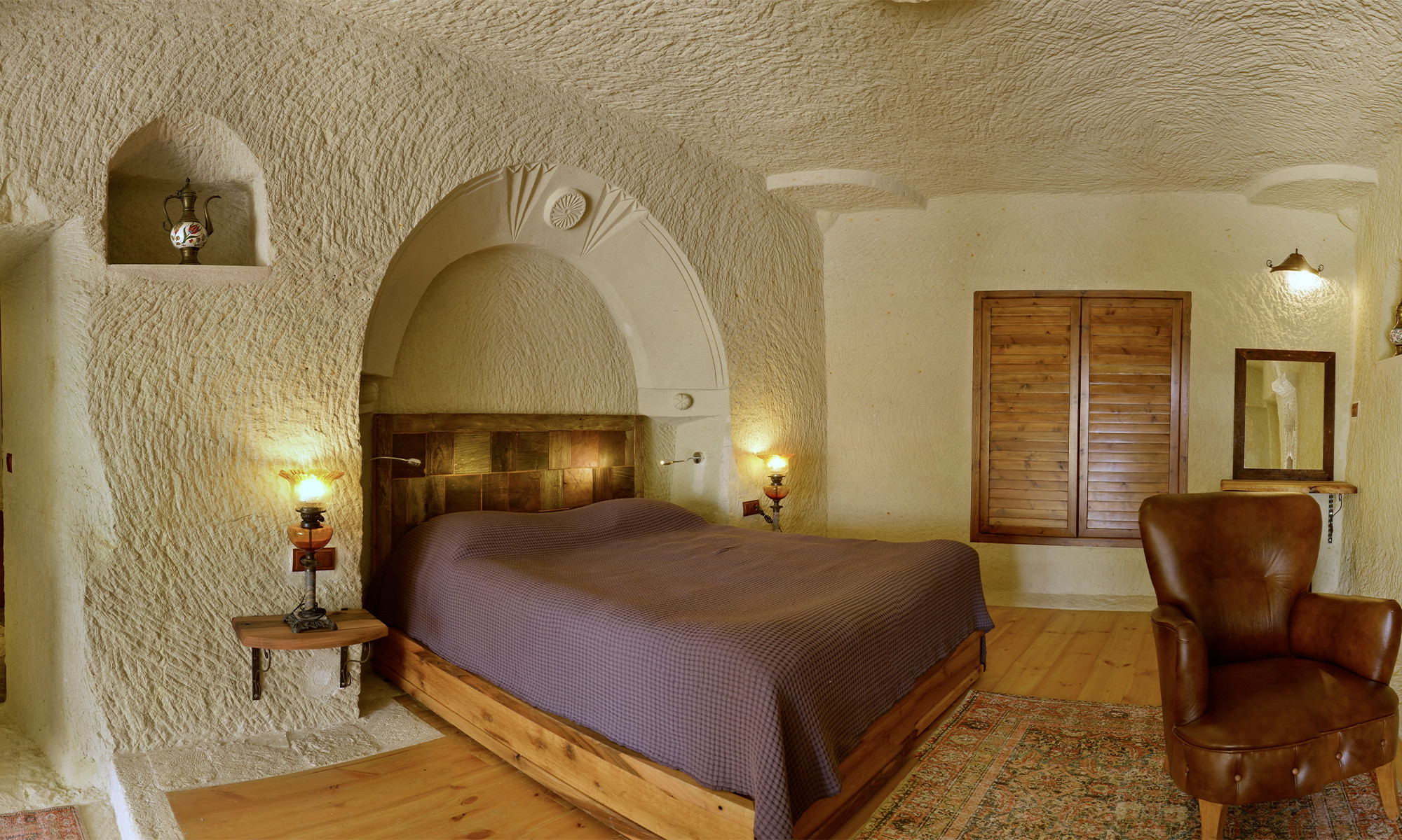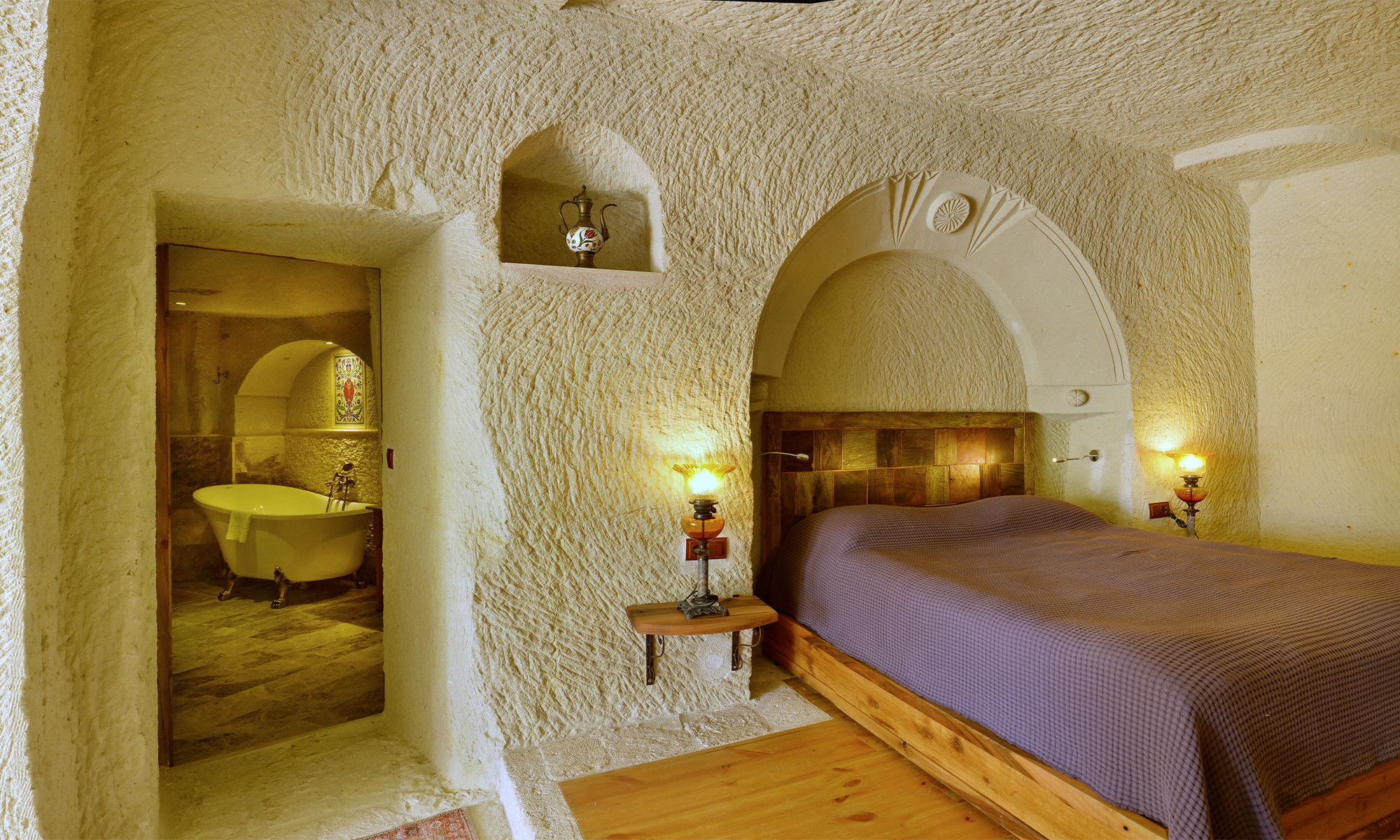 Stone & Cave Suite Room Local Tufa Stone Architecture French Bed/ Super King Size (180cm x 200cm- 67in x 79 in) Bathtub and Shower